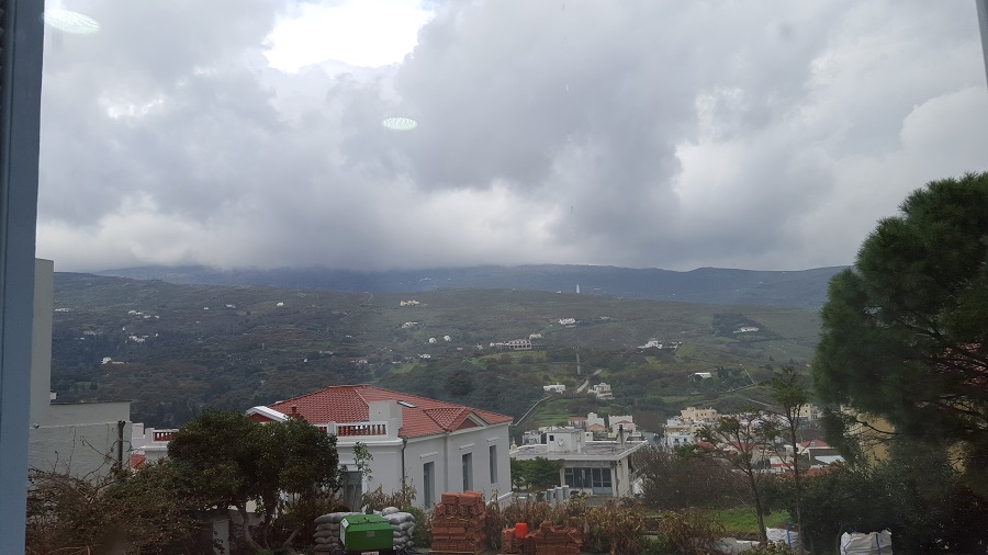 Στον Πειραιά συνέφιασε και στην Αθήνα βρέχει λέει το τραγούδι. Στην Άνδρο λέμε στο Απροβάτου δεν συνέφιασε και πέρα στην Χώρα βρέχει (φωτο: Χ.Π.)