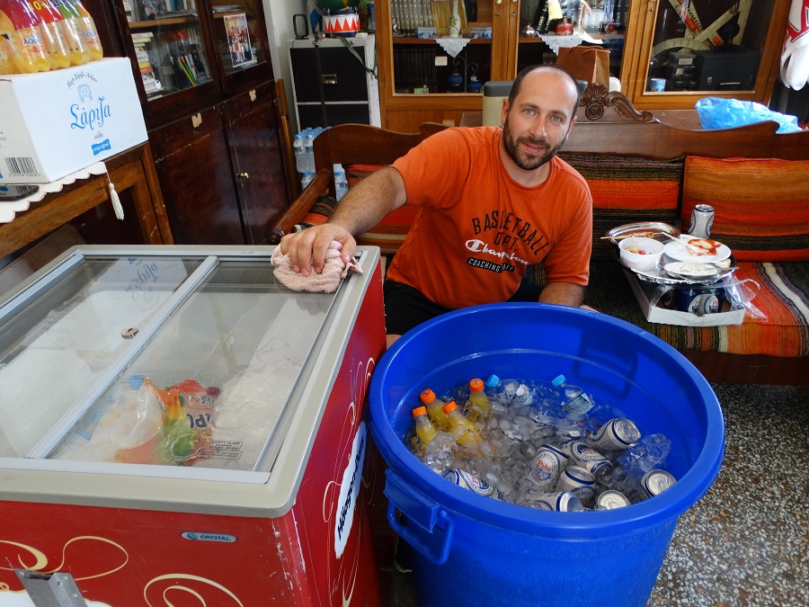 Ο μπάρμαν με τις μπύρες και τα αναψυκτικά στη θέση του... (φωτο: Εν Άνδρω).