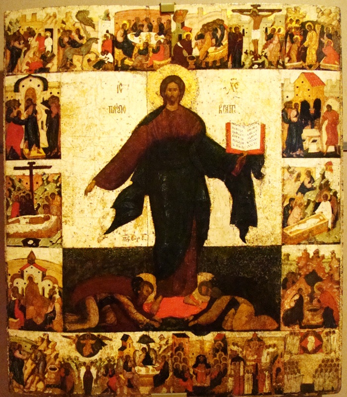 Κάποια στιγμή πρόσεξα την βυζαντινή πτέρυγα. Κι εκεί έμεινα για ώρα μπροστά σε μερικές από τις πιο εντυπωσιακές αγιογραφίες. Ανάμεσα τους και μερικές του κορυφαίου Αντρέι Ρουμπλιώφ. Του μεγαλύτερου ζωγράφου της «αρχαίας ρωσικής τέχνης». Για τη ζωή του Ρουμπλιώφ είχα δει κάποτε ένα φιλμ του σπουδαίου Αντρέι Ταρκόφσκι σ’ έναν κατάμεστο από νέους κινηματογράφο της Αθήνα. Αρκετά χρόνια αργότερα είχα δει ένα άλλο φιλμ του Ταρκόφσκι, την Θυσία, σε έναν άδειο κινηματογράφο του Λέστερ. Και οι δύο μίλαγαν για την βαθιά σχέση των Ρώσων με το βυζαντινό παρελθόν τους! Ίσως αυτές οι δύο ταινίες να απεικόνιζαν περισσότερο από οτιδήποτε άλλο την «ψυχή της Ρωσίας»…