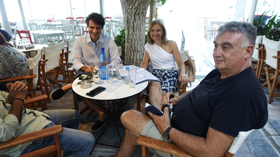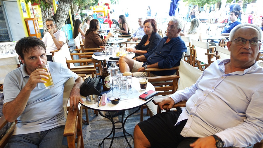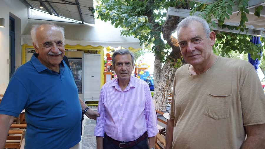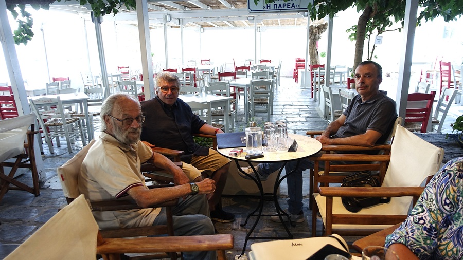 Στην κάτω φωτογραφία - δεξιά από τον εκ Συνετίου καθηγητή και διευθυντή του ΕΠΑΛ Άνδρου Μιχάλη Καλογρίδη - ο εξ Εδιμβούργου φίλος αναγνώστης Σταμάτης Τηνιακός, που επενδύει στην Άνδρο χρήματα που κερδίζει έξω.