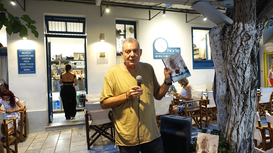 Τελευταίος ομιλητής και πιο ιδιαίτερος ο νεαρός δικηγόρος Γιώργος Μπάλλας, που εστίασε στο πως και γιατί διαβάζει αυτός ως νέος. Εξέθεσε με προσωπικό τρόπο το πως συναντήθηκε σε μερικά από τα βιβλία ιστορίας και τι τον τράβηξε σε αυτά. Αξιοπερίεργη η αναφορά του στο γεγονός πως πρώτα άκουσε για εμάς ως πρόσωπο όταν ήταν φοιτητής στο Ευρωπαϊκό Πανεπιστήμιο της Λευκωσίας κι εμείς διδάσκαμε στο μεταπτυχιακό του Ανοικτού Πανεπιστήμιου της Κύπρου. Του έκανε εντύπωση που ένας ανδριώτης δίδασκε εκεί. Τα βιβλία μας τα συνάντησε αργότερα στην Άνδρο. Ήταν μια ενδιαφέρουσα εμπειρία και για εμάς η σύντομη παρέμβαση του. Και μια επιβεβαίωση πως μερίδα των νέων εξακολουθεί να διαβάζει και ενδιαφέρεται για την ιστορία της Άνδρου...