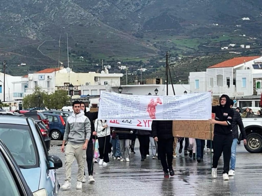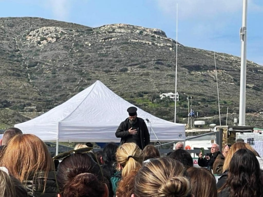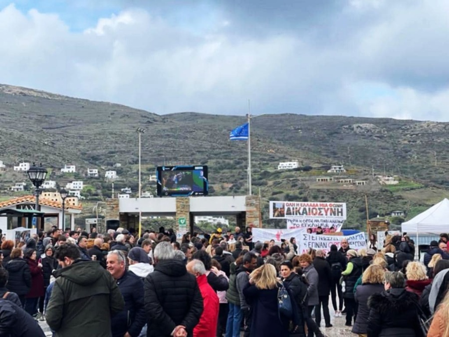 Μέσα σε ένα μουντό συννεφιασμένο πρωινό, με κλειστά όλα τα καταστήματα στο Γαύριο, και πολλά πανώ σε περίπου 600 πολίτες από όλη την Άνδρο, που συγκεντρώθηκαν μίλησαν εκ μέρους των διοργανωτών οι Γιάννης Ξaνθός, Κατερίνα Κακαβελάκη, Μαργαρίτα Κροκόδειλού, Κωστής Πατρίκιος. Στο τέλος ο παπά Μιχάλης Καλαμπούκης διάβασε τα ονόματα των 57 νεκρών των Τεμπών.