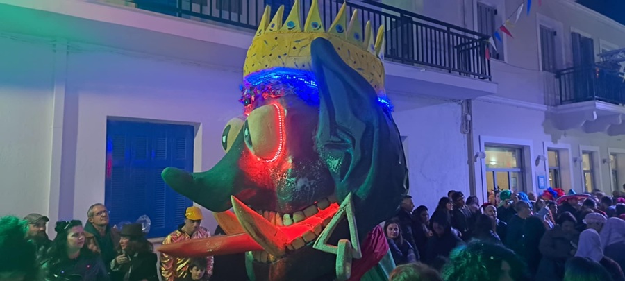 Ο βασιλιάς Καρνάβαλος στο νυχτερινό καρναβάλι του Όρμου Κορθίου.