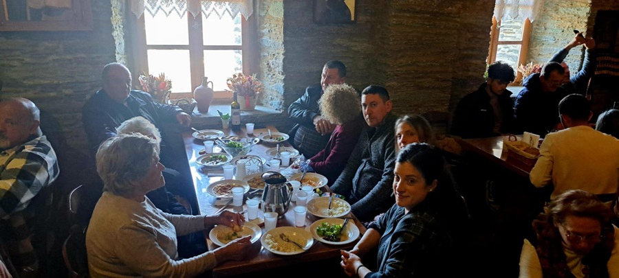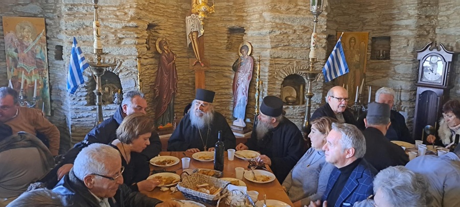 Πολλοί λοιπόν οι προσερχόμενοι όλο το πρωινό. Μεγάλη κοσμοσυρροή. Και πλήθος οι καφέδες, τα γλυκά και τα κεράσματα προς όλους. Και βεβαίως κατά τις 12: 00 το μεσημέρι όλοι οι παραβρισκόμενοι πέρασαν για φαγητό. Πιλάφι με σουπιές κοκκινιστές, κόκκινο κρασί, ψωμί, ταραμοσαλάτα και νηστίσιμα. Οι μάγειρες πολλοί και διαλεκτοί. Άλλος από το Κόρθι, άλλος από το Μπατσί. Οι σερβιτόροι - φίλοι της Μονής - προσέτρεξαν από παντού!