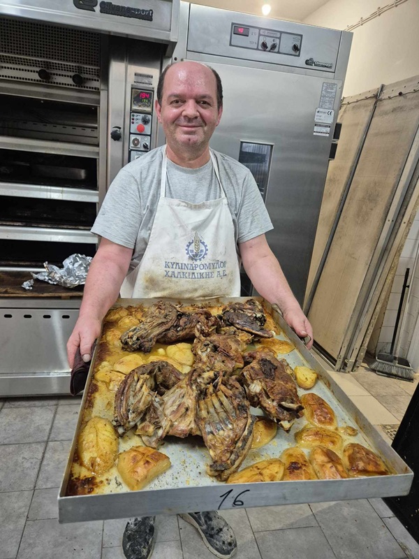 Και το ψητό αρνί για το εστιατόριο του Σταμάτη από τον φούρνο του Γιάννη. Χαμογελαστός ο Γιάννης ετοιμάζεται να παραδόσει το ταψί στο διπλανό εστιατόριο...