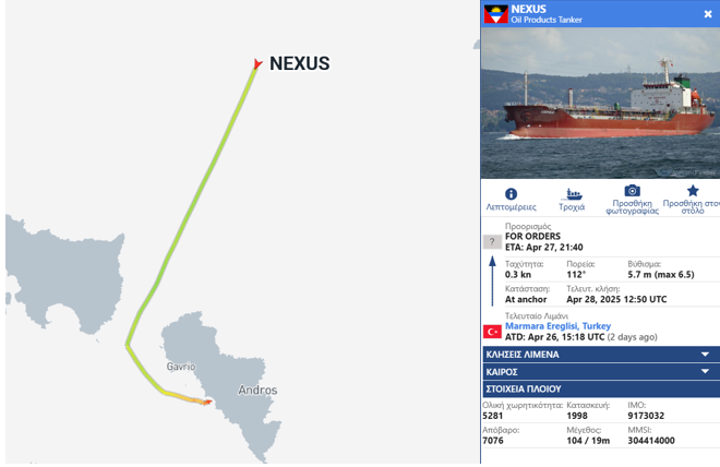 Μια φωτογραφία στο Marine Traffic για τα υπόλοιπα. Μήκος 104 μέτρα και πλάτος 19. Μεγαλούτσικο σε ηλικία, 27 χρόνων. Αγκυροβολημένο στ΄ ανοικτά. Περιμένει εντολές!...