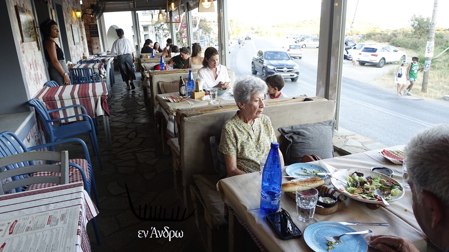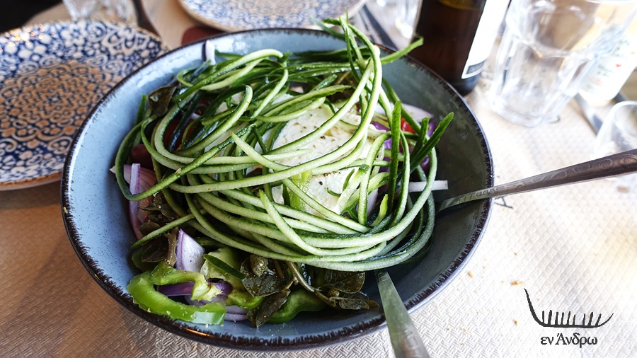 Δεν αργήσαμε να καταλάβουμε το γιατί. Με το που ήρθε η χωριάτικη σαλάτα είδαμε την καλλιτεχνική διαφορά με το αγγούρι κομμένο γαρνιτούρα από πάνω...