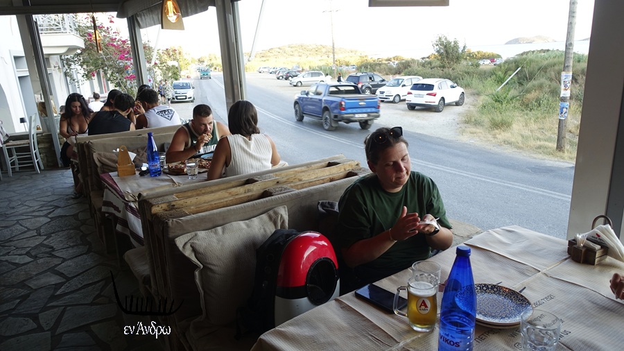 Μετά το κέρασμα βγάλαμε μερικές φωτογραφίες της πιτσαρίας. Το πιο ιδιαίτερο: παρούσες εν σειρά όλες οι ηλικίες: ηλικιωμένοι, μαμάδες με παιδάκια, νέα ζευγάρια, νεανικές παρέες, κοπέλες, αγόρια. Όλες οι ηλικίες παρούσες στην πιτσαρία του Γιώργου. Και όσο είμαστε εκεί οι παρέες εναλλάσσονταν συνεχώς. Η κίνηση μεγάλη...