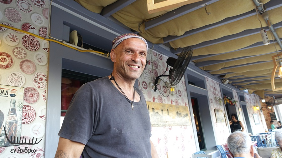 Πήγαμε Κυριακή βράδι 3 Αυγούστου. Ο Γιώργος, που είναι ο master-chef της πιτσαρίας και ο ειδικός που ανοίγει τη ζύμη πνίγεται στη δουλειά. Όμως, εγκατέλειψε το πόστο του στον φούρνο της πιτσαρίας και ήρθε εγκάρδιος στο τραπέζι για να μάς χαιρετίσει. Είδαμε και πάθαμε να τον βγάλουμε μια φωτογραφία. Παραγγείλαμε και περιμέναμε...