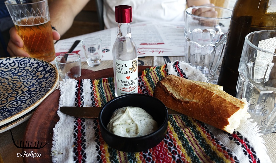 Όχι για πολύ. Μια ευγενέστατη και χαμογελαστή κοπέλα έφερε το "καλωσόρισμα". Ένα εντυπωσιακό τζατζίκι ειδικής κατασκευής του Γιώργου Συρίγου όπου κυριαρχούσε... ο άνηθος! Το σκόρδο λεπτεπίλεπτο! Η παρασκευή μυστική συνταγή του Γιώργου. Συνοδεύονταν από ένα εξαιρετικό ρακί παρασκευής Συρίγου. Βγάλαμε φωτογραφία το δεύτερο κέρασμα γιατί το πρώτο το καταναλώσαμε πριν προλάβουμε να σκεφτούμε την φωτογράφιση...