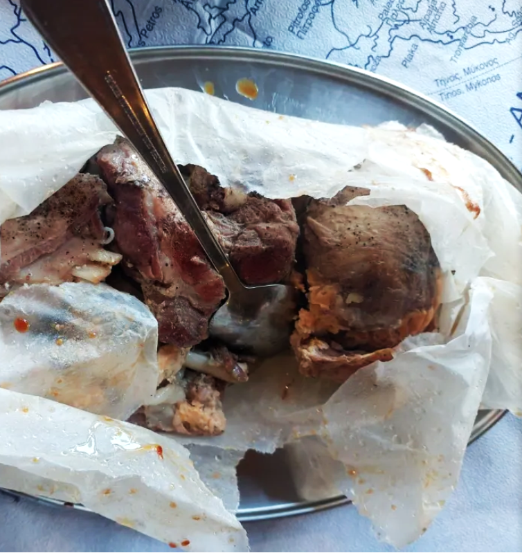 Το πρώτο πράγμα που πρέπει να παραγγείλεις εδώ είναι το κατσικάκι στη λαδόκολλα. Ψήνεται για ώρες και είναι σωστό λουκούμι! Πεντανόστιμο, λιώνει τελείως στο στόμα και έχει εξαφανιστεί από το πιάτο μέχρι να πεις κύμινο, παρόλο που η μερίδα είναι τεράστια… Θα πάρεις, επίσης, συκώτι στην μπόλια, ψημένο στα κάρβουνα, χωριάτικο λουκάνικο και μοσχαρίσια μπιφτεκάκια – μούρλια!