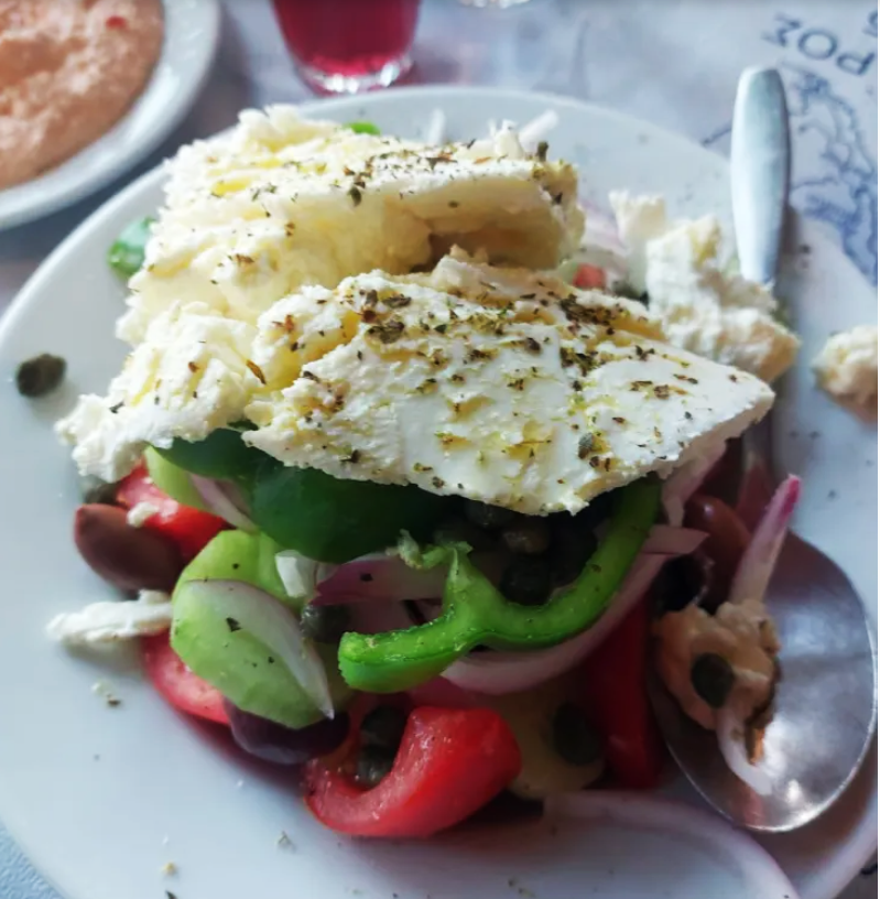 Μόνο ψητά της ώρας θα βρεις (προφανώς), αλλά ό,τι κι αν διαλέξεις, θα το ευχαριστηθείς. Εμείς πήραμε και κολοκυθάκια τηγανιτά και τυροκαυτερή και μια πληθωρική χωριάτικη με ντόπιο τυρί. Γενικώς, φάγαμε για όλο το καλοκαίρι, παράπονο δεν έχουμε.