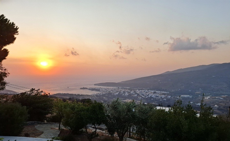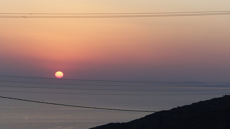 Το απόβραδο είναι πλέον ότι πρέπει για νυκτερινή έξοδο και το ηλιοβασίλεμα της Άνδρου είναι πάντα γοητευτικό ακόμα και μέσα από τα σύρματα. Η φύση νικά πάντα τα εμπόδια των ανθρώπων...