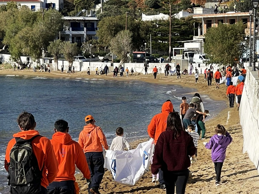 Οι μαθητές του Δημοτικού Σχολείου, μαζί με τον διευθυντή και τους δασκάλους τους, συμμετείχαν στον καθαρισμό της παραλίας σε συνεργασία με το Ίδρυμα Λασκαρίδη, που έφτασε στο Μπατσί με το πλοίο του Ιδρύματος.