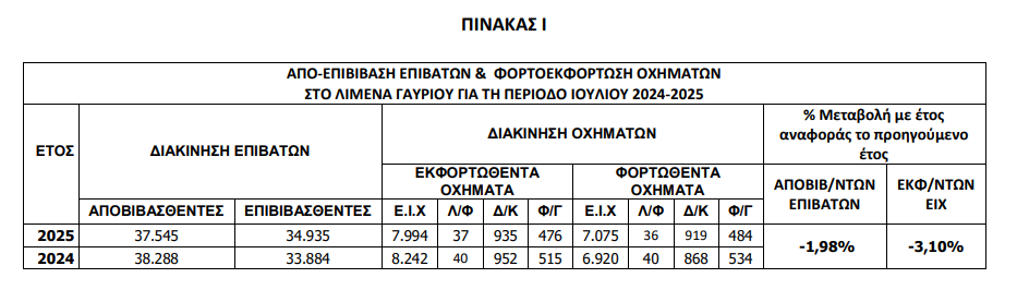ΙΟΥΝΙΟΣ 2025: Μικρή μείωση αποβιβασθέντων επιβατών και ΙΧ στην Άνδρο (– 1,98 % & – 3,1 %)