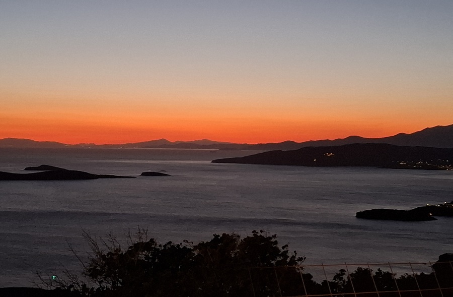Συνεχίζουμε τη διαδρομή για Γαύριο μέσω Απροβάτου και φτάνουμε στο "Μπαλκόνι του Αιγαίου". Κατάμεστο. Θα γράψουμε προσεχώς για το θέμα. Τώρα ας σταθούμε στο μοναδικό βραδινό θέαμα των χρωμάτων στον διάφανο ορίζοντα του απόβραδου, που τυλίγει τα απέναντι νησιά: την Κύθνο, την Εύβοια. Αλλά και την Αττική, που φαίνεται στο νυχτερινό ορίζοντα στα 36 μίλια απόσταση. Τι είναι 36 μίλια; Μια ανάσα. Λιγότερο από δύο ώρες με το συμβατικό. Λίγο παραπάνω από μια ώρα με το ταχύπλοο.