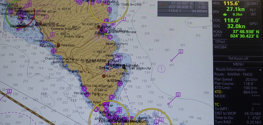 Περνάμε ανοιχτά κι αφήνουμε πίσω την Άνδρο με 32 μίλια την ώρα...