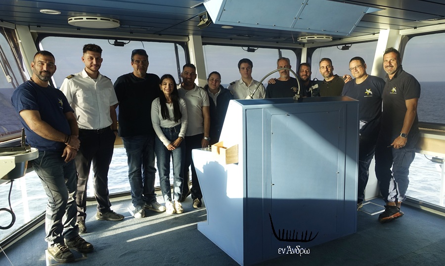 Άλλη μια αποκλειστική φωτογραφία όσων βρέθηκαν στη γέφυρα στην πρώτη διαδρομή του πλοίου. Τα ονόματα όσων είναι στη φωτογραφία: ΤΑΣOΣ XΛAMIΔHΣ NAYTHΣ, ΓIΩPΓOΣ AΛEΣTAΣ YΠOΠΛOIAPXOΣ , ΗΛΙΑΣ ΓΡΗΓΟΡΑΤΟΣ ΠΡΟΙΣΤΑΜΕΝΟΣ ΝΑΥΤΙΛΙΑΚΟΥ ΤΜΗΜΑΤΟΣ, XPYΣANΘH ΣΤΕΦΑΝΟΥ ΠΛΟΙΟΚΤΗΤΡΙΑ, ΓIANNHΣ BOYTΣEΛAKOΣ ΠΛOIAPXOΣ , EIPHNH BIΔAΛH YΠAPXOΣ OMIXAΛHΣ BOYΛΓAPHΣ ΔOKIMOΣ ΠΛOIAPXOΣ, BAΓΓEΛHΣ KAΛΛHΣ ΠPOIΣTAMENOΣ HΛEKTPOΛOΓOΣ , ΓIΩPΓOΣ PAITΣOΣ A MHXANIKOΣ, ΣΠYPOΣ KAΛOΓHPOY A MHXANIKOΣ, ΛEONAPΔOΣ KOPAXAHΣ ΠPOIΣTAMENOΣ HΛEKTPOΛOΓOΣ , BAΓΓEΛHΣ BOYΔOYPHΣ NAYTHΣ