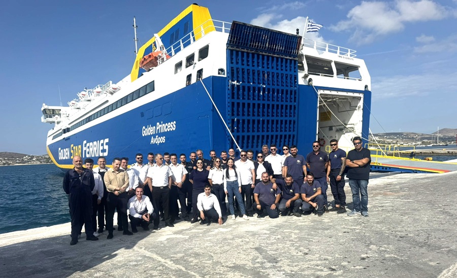 Αναμνηστική φωτογραφία με όλο το πλήρωμα του πρώτου ταξιδιού του Golden Princess στο λιμάνι της Πάρου.