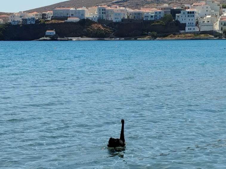 Φωτογράφισα στο Νειμποριό προχτές έναν μαύρο κύκνο. Είναι ένα σπάνιο πουλί της Αυστραλίας. Το πως βρέθηκε Ελλάδα και στο Νειμποριό δεν ξέρω. Όμως είναι εντυπωσιακό πουλί και η φωτογράφιση του με οδήγησε να σάς στείλω τις φωτογραφίες του στο Εν Άνδρω, προς πληροφόρηση των αναγνωστών σας, αλλά και προς ανάδειξη αυτής της σπάνιας περίπτωση κύκνου στα μέρη μας.