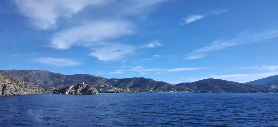 ΠΡΩΙΝΗ ΛΗΨΗ: Δευτέρα 24 Νοεμβρίου 2025. Φθάνω Άνδρο με το πρωινό πλοίο. Ένα ακόμα αυθημερόν ταξίδι αυτή την εποχή. Πάμε κι ερχόμαστε. Σηκώνομαι την ώρα που αναγγέλλεται η άφιξη του πλοίου. Κοιτώ αφηρημένα την απόσταση από το νησί... και μένω άναυδος! Είναι τέτοια η φωτεινότητα και η διαφάνεια που θαρρώ πως βλέπω μια ψεύτικη εικόνα. Η Άνδρος προβάλει τόσο λαμπερή κι ολόφωτη στο πρωινό του Κάβο Ντόρου. Σαν να μην την έχω ξαναδεί έτσι πριν. Κοιτώ ξαφνιασμένος. Προλαβαίνω και φωτογραφίζω από την γέφυρα του πλοίου την στιγμή...