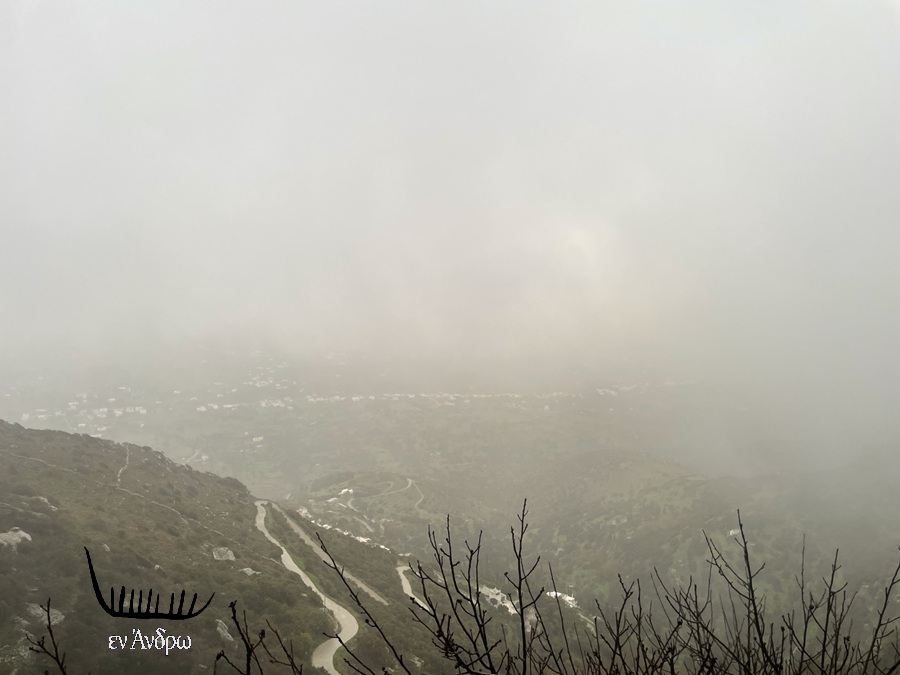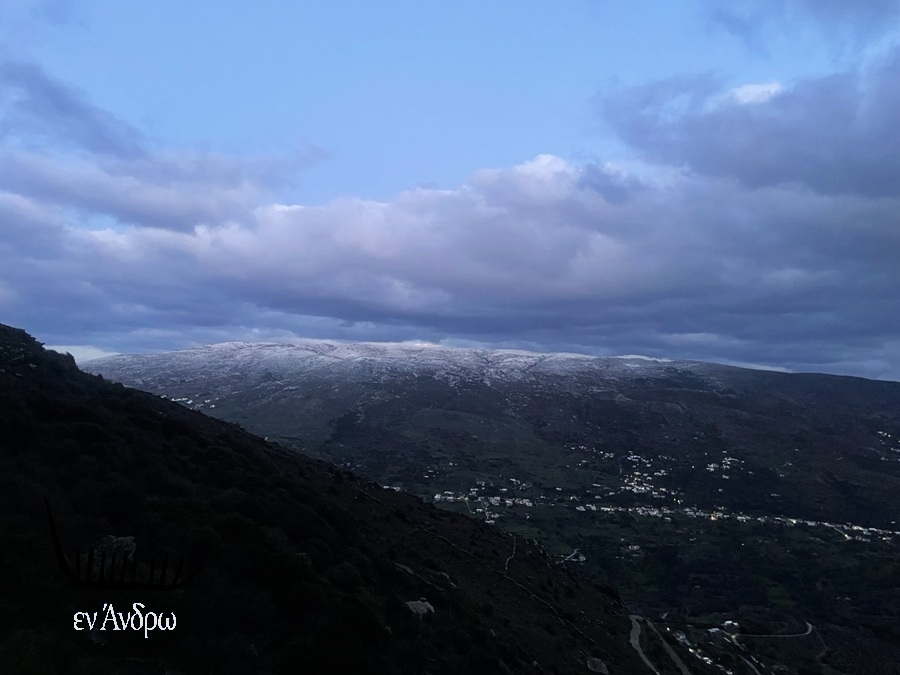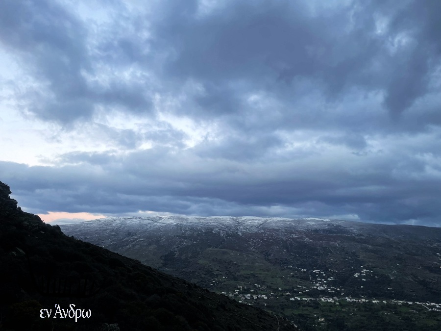 Και καθώς η μέρα προχωρά μια ακόμα εικόνα της Χώρας της Άνδρου και μια ακόμα εικόνα ελαφρού χιονιού στις άκρες των κοντινών βουνών...