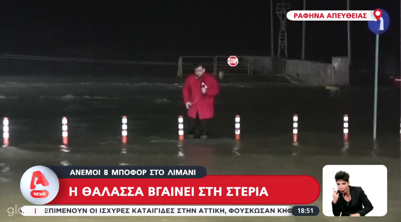 Λίγο πριν ξεχειλίσει έφτασε λίγο μετά τις 12 τη νύχτα της Τετάρτης προς Πέμπτη 21 προς 22 Ιανουαρίου το Μεγάλο Ρέμα της Ραφήνας. Μόλις ενάμιση μέτρο κάτω από το όριο της τσιμεντένιας όχθης το αγριεμένο νερό ήταν στο γεφύρι λίγο πριν τις εκβολές στη θάλασσα. Την ίδια ώρα αλλεπάλληλες ήταν οι προειδοποιήσεις του 112 για να απομακρυνθούν οι κάτοικοι από τις όχθες του.