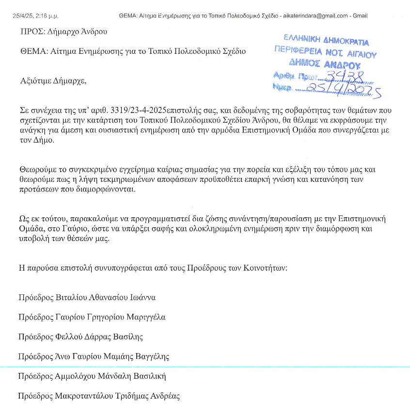 ΑΙΤΗΜΑ ΠΡΟΣ ΔΗΜΟ ΑΝΔΡΩΝ ΤΟΠΙΚΩΝ: ΒΙΤΑΛΙΟΥ, ΓΑΥΡΙΟΥ, ΦΕΛΛΟΥ, ΑΝΩ ΓΑΥΡΙΟΥ, ΑΜΜΟΛΟΧΟΥ, ΜΑΚΡΑΤΑΝΤΑΛΟΥ