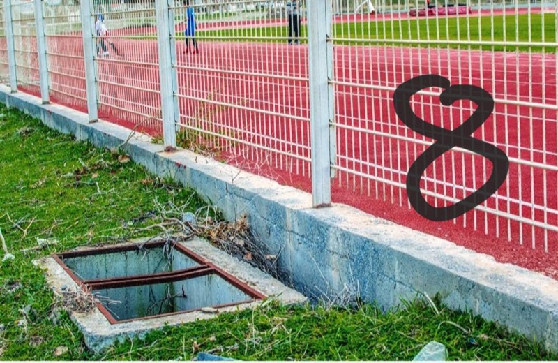 Ταρτάν διαλυμένο, χορτάρι ακατάλληλο, πυλώνες πεταμένοι στο έδαφος, καθίσματα ακατάλληλα να φιλοξενήσουν θεατές!