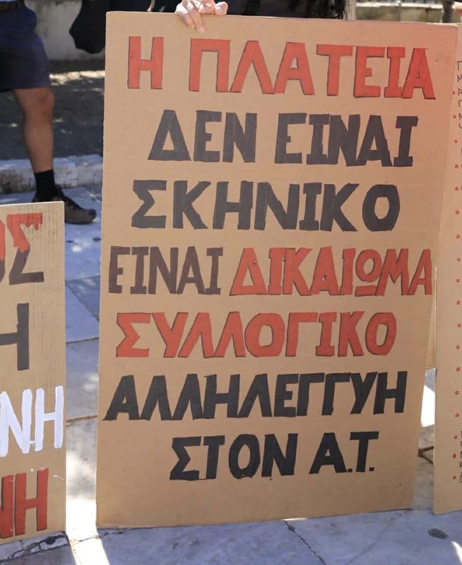 Με συνθήματα όπως «13 ώρες δουλειάς – εργασιακός μεσαίωνας – να μην ζήσουμε σαν σκλάβοι» και «Η πλατεία δεν είναι σκηνικό – είναι συλλογικό δικαίωμα», οι διαδηλωτές διαμαρτυρήθηκαν για τις εργασιακές ρυθμίσεις και την πολιτική κατάσταση.