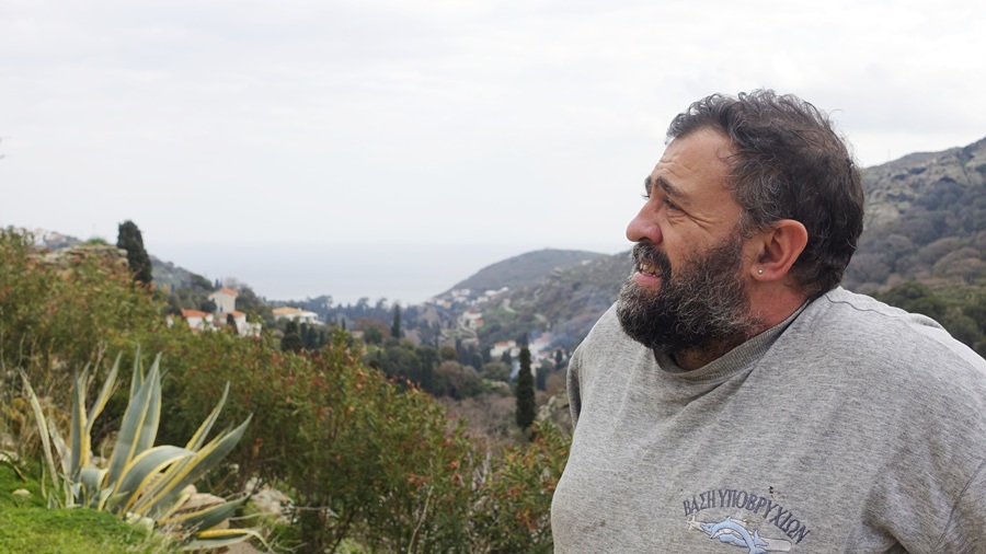 Ο Γιώργος Ελευθερίου μπροστά στο "καρνάγιο" του στις Στενιές...