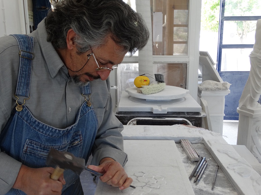 Ο Γιώργος Χλης στο μαρμαρογλυφείο του μερικά χρόνια πριν...