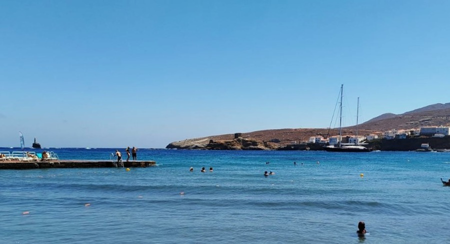 Ο Ναυτικός Όμιλος σημαιοστολισμένος περιμένει τον τερματισμό του 58ου ιστιοπλοϊκού αγώνα Άνδρου. Όχι συχνό θέαμα...