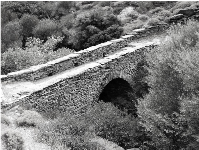 Δεν τον ένοιαζε η νυχτερινή διαδρομή τόσο, όσο που πέρναγε μέσα από τα Διποτάματα. Ένα βραχώδες τοπίο στην καρδιά του νησιού, μια ώρα δρόμο από κάθε κατοικημένη περιοχή, μια βαθιά χαράδρα μέσα στα βουνά, που στο βάθος της είχε δύο ποτάμια, νερόμυλους, κελιά για τα ζώα και αλώνια, σε κάθε αμασιδάκι. Μέσα από κει πέρναγε η μεγάλη στράτα που ένωνε τα χωριά του νότου με τη Χώρα και η απόσταση με τα πόδια ήταν τουλάχιστον 3 ώρες δρόμο. Με τα ζώα ήταν πιο λίγο αλλά έτσι φορτωμένα ούτε να τα καβαλήσει μπορούσε ούτε να τα ζορίσει.