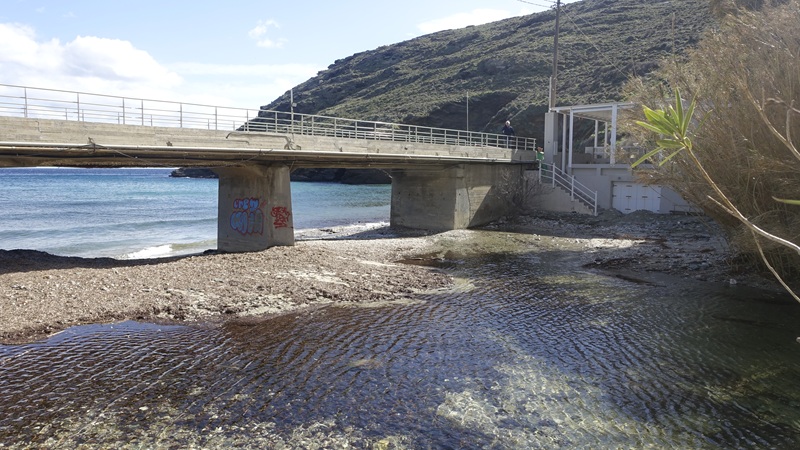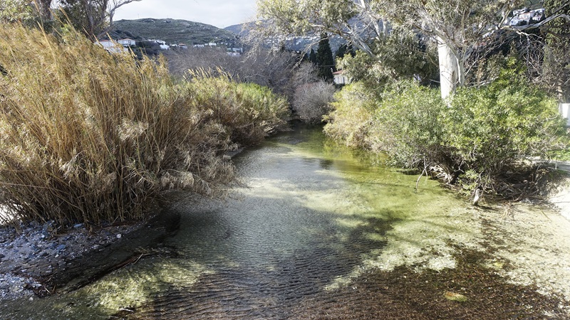 Μαζί με τη δύναμη της θάλασσας προσθέστε και τη δύναμη του ρέματος που κατέβασε πολύ νερό και γέμισε ολόκληρη την κοίτη του ξεπλένοντας ότι είχε μείνει από τα καλοκαιρινά βουρκόνερα. Το νερό μετά τις καταιγίδες – την Παρασκευή 20/2 – έτρεχε πολύ και γάργαρο. “Κρίμα που τόσο νερό πάει στη θάλασσα” μουρμούρισε δίπλα ο πρόεδρος της Κοινότητας…