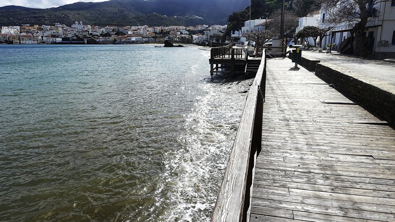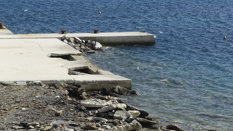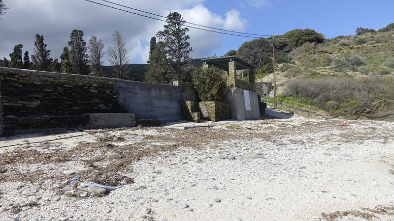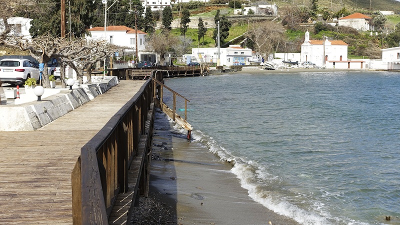 Πάμε και στο πέτρινο παλιό τοιχίο που υπήρχε στην αρχή του παραλιακού δρόμου, εκεί που καταλήγει η στροφή στην ακτή. Μέχρι εκεί που είναι δεμένα τα σχοινιά στον πέτρινο τοίχο ήταν άμμος και βότσαλα. Με τα σχοινιά ήταν δεμένες τρεις βάρκες που κάτοικοι είχαν τραβήξει για τον χειμώνα στην ακτή. Πάει και η άμμος, πάνε και τα βότσαλα, πάνε και οι τρεις βάρκες. Τα πήρε όλα η θάλασσα. Οι ιδιοκτήτες τους βρήκαν μόνο τα σχοινιά με τα οποία ήταν δεμένες στον πέτρινο τοίχο. Πάει και η πέτρινη βάση που ήταν δύο χτιστές καμπίνες για να αλλάζουν οι λουόμενοι. Τώρα θα πρέπει να φτιαχτεί τσιμεντένιος ο τοίχος και μετά θα περιμένουν όλοι να φέρει η θάλασσα κάτι από την παραλία που πήρε!…
