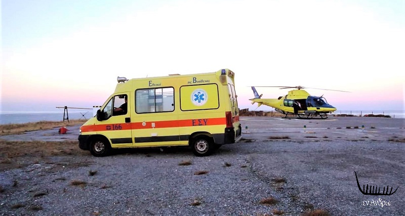 Αεροδιακομιδή με ελικόπτερο του ΕΚΑΒ στην Άνδρο