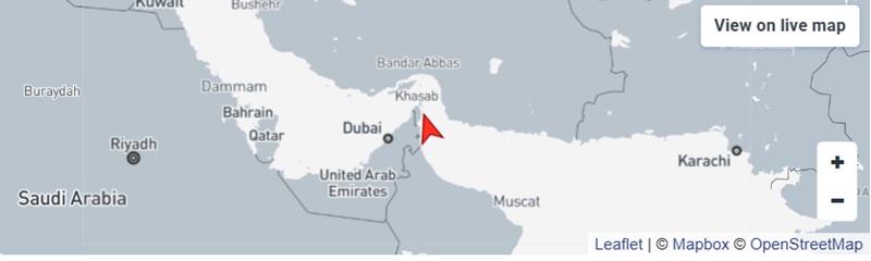 Η θέση του πλοίου στα Στενά του Ορμούζ