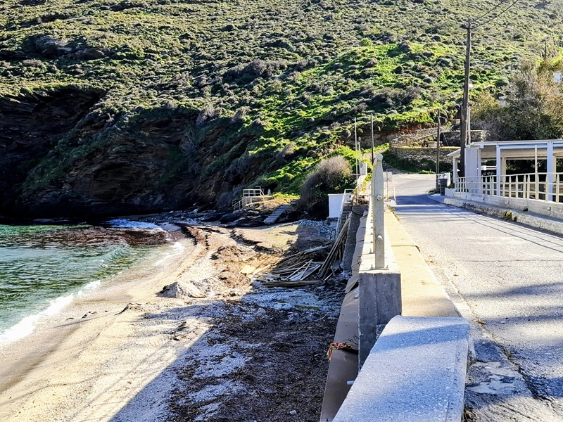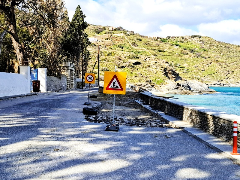 Φυσικά και δεν ρωτάμε για την επισκευή του δρόμου δίπλα στο γεφυράκι μπροστά στο εστιατόριο Γυάλια. Εκεί ανασκάφηκε όλος ο γιαλός. Έγινε χαντάκι απορροής, Ρίχτηκαν θεμέλια. Έπεσαν μεγάλες πέτρες κάτω από τον δρόμο και ρίχτηκε τσιμεντένιο τοιχίο εξωτερικά να τις συγκρατήσει. Φανταζόμαστε πως δεν έγιναν όλα αυτά χωρίς έστω μια υποτυπώδη μελέτη κάποιου μηχανικού; Δεν νομίζουμε να έγιναν τόσες παρεμβάσεις επί του αιγιαλού και του υποστρώματος του δρόμου χωρίς κάποιος να μελέτησε κάτι; Κάποια επιτροπή θα γνωμάτευσε. Και κάποιοι εγγυώνται τον δρόμο. Δεν γίνονται τόσο εργώδη έργα με έναν εργολάβο ή μερικούς εργάτες;