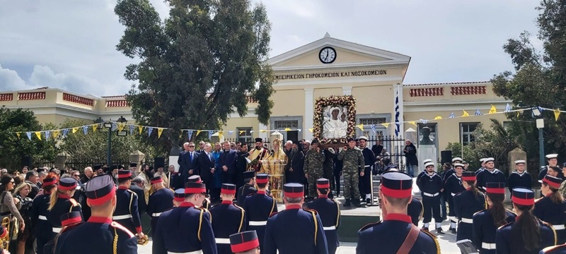 Ακολούθησε η λιτάνευση μέχρι την πλατεία Γηροκομείου όπου έγιναν και οι ομιλίες των επισήμων. Πρώτος μίλησε ο μητροπολίτης Δωρόθεος Β΄ που έδωσε τον τόνο της εορτής και ο λόγος του ήταν και ο μόνος σχετικός με την εορτή. Ακολούθησε (μιλώντας ως οικοδεσπότης!!!) ο εκ Νάξου κυκλαδάρχης αναπληρωτής υπουργός Γ. Βρούτσης, ο οποίος περιπλανήθηκε μεταξύ πολιτικής κολακείας και διεθνούς πολιτικής! Δίνοντας έμφαση περί της «ενότητας του λαού» στην «όμορφη δημοκρατία» μας! Ακολούθησε, ο υφυπουργός ναυτιλίας Σ. Γκίκας (μίλησε ως φιλοξενούμενος) όπου τόνισε – με αφορμή τα γεγονότα των ημερών – κι αυτός την “ενότητα του λαού” και την “ειρήνευση στον κόσμο”.