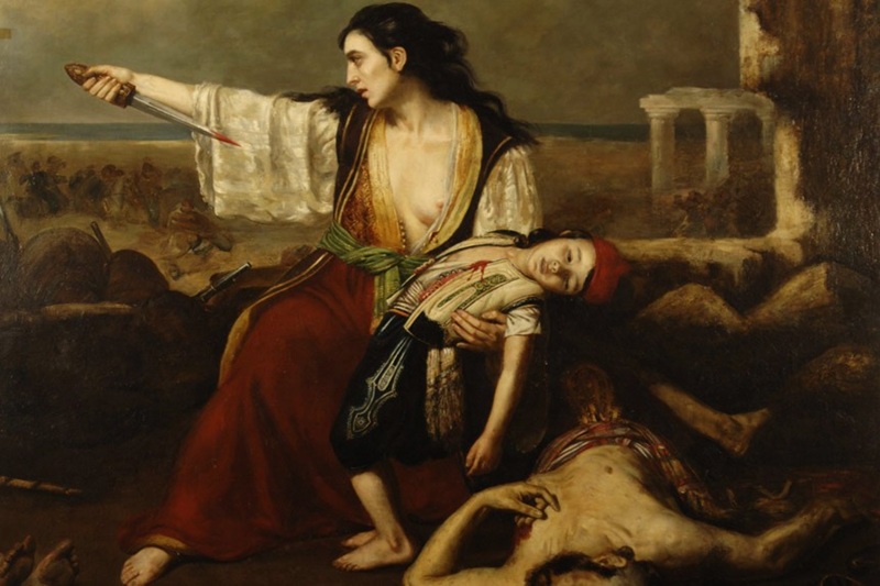 Ντελακρουά: Μαθαίνοντας ο μεγάλος Γάλλος ζωγράφος Ντελακρουά την είδηση της Εξόδου του Μεσολογγίου, αναπαράστησε το ηρωικό συμβάν, ζωγραφίζοντας την Ελλάδα να περπατά λυπημένη επάνω στα ερείπια ης «Ιεράς Πόλεως».