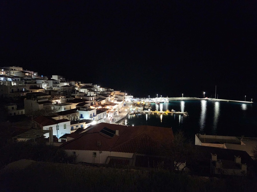 Ξεκινήσαμε αυτή την μεγαλοβδομαδιάτικη περιδιάβαση στην Άνδρο – ανήμερα Μεγάλη Πέμπτη του σωτηρίου έτους 2026 – με μια υπέροχη ημερήσια φωτογραφία από την γαλάζια Χώρα και κλείνουμε με μια εξαιρετική νυχτερινή φωτογραφία από το μοναχικά κοσμοπολίτικο Μπατσί: την έστειλε η φίλη Σοφία. Και μαζί με αυτή από εμάς τις καλύτερες ευχές για Καλή Ανάσταση: στον τόπο, στο νησί και στις καρδιές μας…