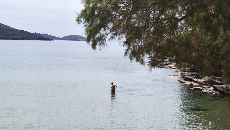 Πάντως ήρθαν και οι πρώτοι θαρραλέοι και πήγαν “βουρ” στην θάλασσα για μπάνιο! Η παραπάνω φωτογραφία δείχνει τον πρώτο πρωινό στην παραλία στο Μπατσί α βουτά. Ή, μάλλον να το σκέφτεται λίγο πριν βουτήξει.