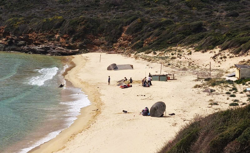 Και εδώ η φωτογραφία που αποτυπώνει την Χρυσή Άμμο χωρίς ομπρέλες και μπαρ. Όπως την γέννησε η μάνα Άνδρος. Λίγο μοναχική, λίγο θλιμμένη, λίγο έρημη. Λόγω εποχής. Λίγο για Ροβινσώνες θα λέγαμε. Μπορεί κάποιοι να την απολαμβάνουν έτσι. Αλλά πόσοι. Πάντως οι πολλοί ζητούν εξυπηρετήσεις πλέον στις παραλίες. Έχουν αλλάξει οι καιροί. Αυτό λένε οι γνωρίζοντες περί τον τουρισμό. Κατά τα άλλα υπήρξαν κάποιοι τολμηροί που πήγαν Μεγάλη Παρασκευή μεσημέρι για μπάνιο κι εδώ…
