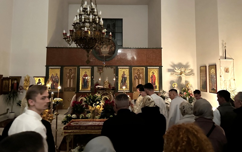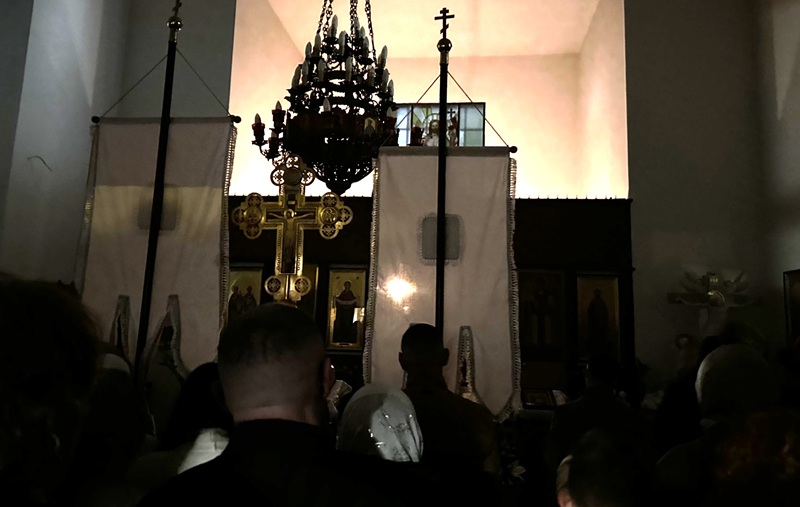 Ανάσταση στον Ορθόδοξο Καθεδρικό Ναό του Αγίου Βάτσλαβ στο Μπρνο της Τσεχίας. Στην φωτογραφία τα φώτα του ναού έχουν σβήσει εν αναμονή της έλευσης του Αγίου Φωτός…