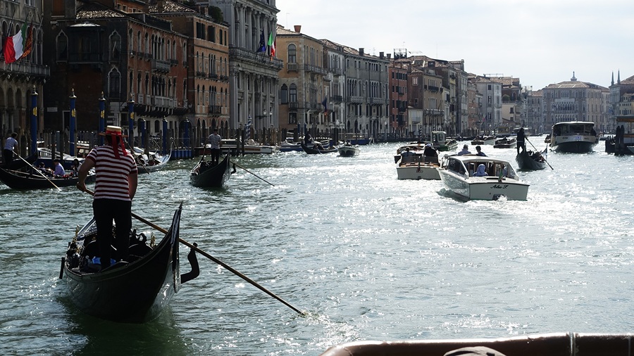 Βγάλαμε λοιπόν εισιτήριο για την επομένη. Φτάσαμε. Πήραμε το καραβάκι-λεωφορείο. Διασχίσαμε το Μεγάλο Κανάλι σε «ώρα αιχμής»! Μάλιστα, υπάρχει και «ώρα αιχμής», όπως και μποτιλιάρισμα στο Μεγάλο Κανάλι! Και κάπου εκεί σε αφήνει άναυδο η κίνηση από γόνδολες, βαρκούλες, καραβάκια-ταξί, καραβάκια-λεωφορεία και σκάφη αναψυχής ΙΧ. Είναι κάποιες στιγμές της μέρας που το Μεγάλο Κανάλι θυμίζει λεωφόρο διπλής κατεύθυνσης. Το ότι φτάσαμε εγκαίρως οφείλετε σε ένα μικρό κυκλοφοριακό θαύμα. Από αυτά που συμβαίνουν καμιά φορά στους δρόμους ή στα κανάλια της ζωής.