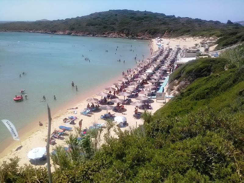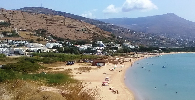 Με το θερμόμετρο να σκαρφαλώνει σήμερα, αλλά και το δροσιστικό αέρακι να κρατάει, οι εκδρομείς έχουν κατακλύσει τις παραλίες της Άνδρου. Δεν υπάρχει ομπρέλα για δείγμα σε μερικές παραλίες (φωτ. Λ.Μ.).