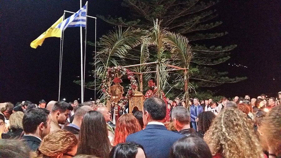 Θεοσκέπαστη Στο προαύλιο της Θεοσκέπαστης ο παπα-Μιχάλης λέει το “Χριστός Ανέστη”. Πλήθος κόσμου παρακολουθεί…