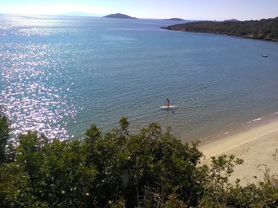 Του Δημήτρη Σταυρόπουλου Δύσκολο να πιστέψεις πως είναι πια Νοέμβριος και ο καιρός είναι ακόμα καλοκαιρινός στην Άνδρο. Όμως ο κωπηλάτης με την σανίδα του το… πιστεύει και το παραπιστεύει!!! Και κωπηλατεί σ’ εναν ηλιόλουστο Νοέμβρη στην παραλία της Χρυσής Άμμου… (φωτ. Δ. Σταυρόπουλος).