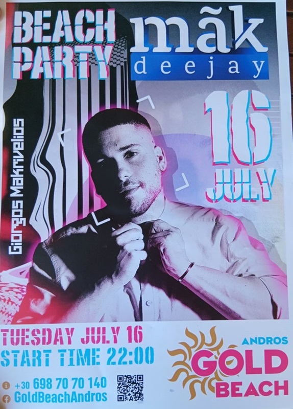 Το πρώτο καλοκαιρινό beach party στην πιο δημοφιλή παραλία του νησιού. Στην Χρυσή Άμμο, στο στέκι της νεολαίας, την Τρίτη 16 Ιουλίου και σε ώρα έναρξης 22.00 ο dj Mac θα παρουσιάσει το πρόγραμμα του.